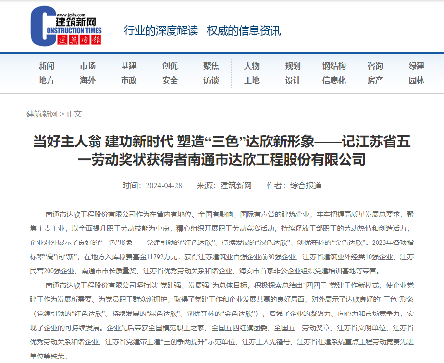 歡迎訪問南通市達欣工程股份有限公司官方網站!