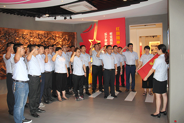 宣誓儀式上,全體黨員面向黨旗,舉起右拳,莊嚴宣誓,再次感受入黨時的激動情懷,以此牢記共產黨員肩負的歷史責任與使命,牢記作為一名共產黨員忠于中國共產黨、忠于祖國、忠于人民的錚錚誓言。