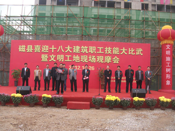 今年3月6日,磁縣住建局副局長趙志彬帶領質量、安全監督部門到項目部進行檢查指導,對形象策劃、現場布置、場容場貌等方面給予了很高的評價,并確定將該項目作為轄區建設工地的標桿。對此工程公司十分重視,加大了安全文明施工投入力度,嚴格按照國家AAA級文明工地的標準進行常規管理,本項目現已在磁縣成為亮點工程,取得了良好的社會效應。