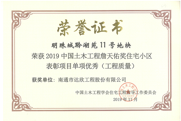項目在建設過程中,公司領導班子帶領項目員工齊心協力,以打造高品質住宅、一流住區環境為宗旨,注重工程創優工作,通過精心組織、科學施工,確保了施工過程安全文明,鑄就了卓越的工程品質。先后獲得“蘇州市姑蘇杯”、“江蘇省建筑施工標準化文明示范工地”等榮譽稱號。
