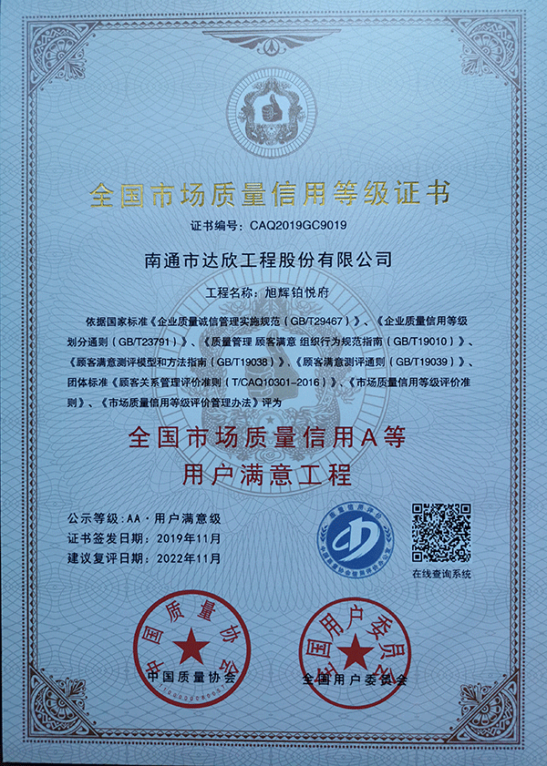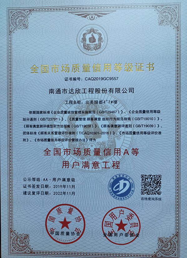 一舉獲得三項殊榮不僅僅是向外界展示了達欣集團在工程建設上的技術實力和精品工程信譽度,更是達欣集團在工程建設中以“質量贏得市場,使企業建立較強的市場競爭力”。