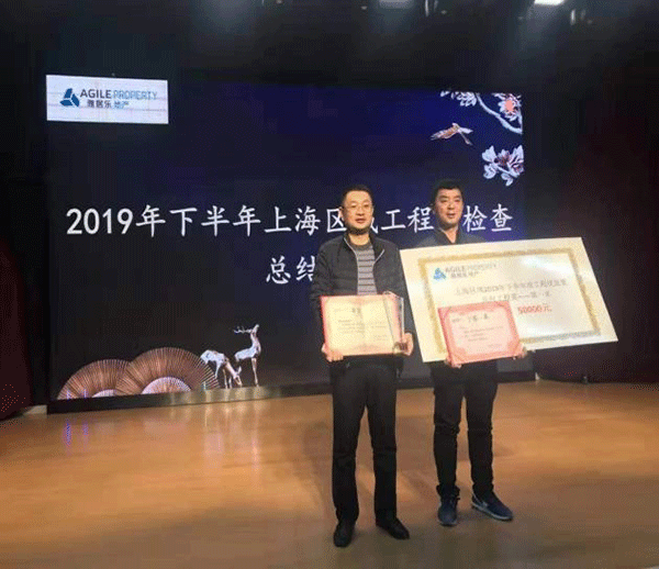 雅居樂地產(chǎn)集團為保證工程質(zhì)量,激勵區(qū)域內(nèi)各承建公司樹立優(yōu)秀總包單位標桿,實施全年上、下半年度區(qū)域內(nèi)檢查評比,第一工程公司承接的中央府項目在雅居樂地產(chǎn)集團上海區(qū)域上半年檢查評比中獲得了“雅居樂上海區(qū)域總承包工程第一名”的殊榮。集團公司董事、第一工程公司經(jīng)理杭小建受邀在雅居樂地產(chǎn)集團上海區(qū)域上半年度總結大會上領獎并作經(jīng)驗交流。