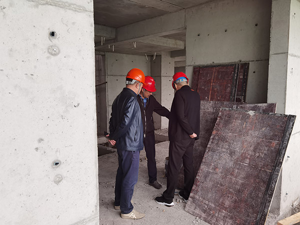 在施工現場,董事長馬和軍聽取了項目建設情況的匯報,高度肯定了項目主樓采用的疊合板底漏漿控制技術,并對檢查中發現的問題提出了整改意見。