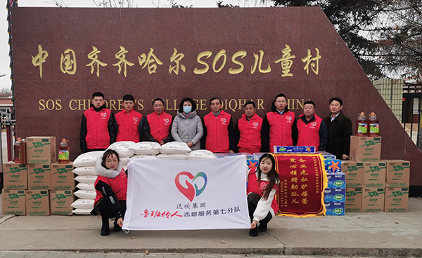 11月19日,達(dá)欣集團(tuán)·魯班傳人志愿者服務(wù)第七分隊(duì)在第七工程公司總經(jīng)理陳貴榮的帶領(lǐng)下來到齊齊哈爾市SOS兒童村,給村里的孩子們送來了2000斤面粉,1000斤豆油,100提衛(wèi)生紙等生活物資,以表達(dá)對(duì)孩子們的關(guān)愛和關(guān)心。