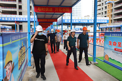 6月11-12日,由集團第八工程公司承建的鉑悅濱江項目,舉行長沙市、湘江新區(qū)兩級建設(shè)工程質(zhì)量安全管理標準化觀摩活動。省、市、區(qū)三級安全質(zhì)量監(jiān)督站領(lǐng)導現(xiàn)場觀摩指導,共計200多家單位、400多人參加了本次活動,因疫情防控,觀摩人員分批進入工地。