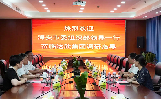 7月1日下午,海安市委常委、組織部部長、統戰部部長錢旭東,“兩新”工委書記、組織部常務副部長吳蘭,赴集團調研指導。集團董事長馬和軍、黨委書記劉厚純等陪同。