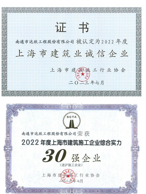 近日,上海市建筑施工行業協會公布了《2022年度上海市建筑施工企業綜合實力數據統計結果的通知》。集團第一工程公司連續十六年獲評“2022年度上海市建筑施工企業綜合實力30強企業”和“2022年度上海市建筑業誠信企業”稱號。
