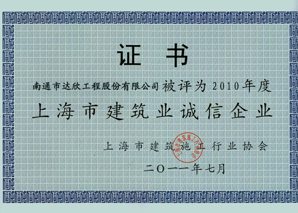 “上海市建筑業(yè)誠信企業(yè)”評選活動由上海市建筑施工行業(yè)協(xié)會組織,每年舉辦一次,宗旨在于不斷推進(jìn)建筑施工企業(yè)的行業(yè)自律和誠信建設(shè),提高建筑施工企業(yè)的綜合實力,促進(jìn)行業(yè)健康發(fā)展。第一工程公司在誠信體系建設(shè)中,充分發(fā)揮表率作用,勇當(dāng)誠信龍頭。通過管理創(chuàng)新,將企業(yè)誠信建設(shè)納入公司經(jīng)營管理的全過程。制定誠信體系、誠信教育管理、誠信承諾管理、誠信評價管理等一系列誠信管理制度,推動誠信建設(shè)工作,創(chuàng)出了較好的經(jīng)濟(jì)效益和社會效益,同時,也樹立了達(dá)欣公司誠實守信的良好社會形象。