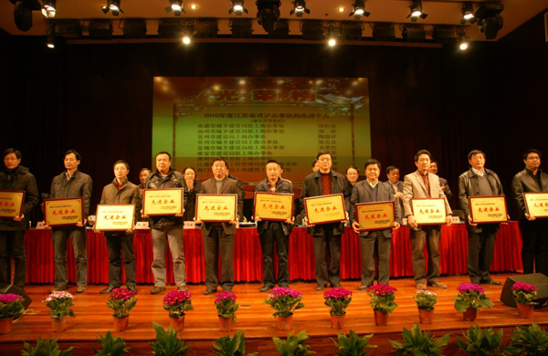 3月5日,江蘇省人民政府駐滬辦、江蘇省建筑工程管理局在上海隆重召開了2010年進滬施工總結表彰大會,出席大會的有江蘇省人民政府駐上海辦事處主任王建康、上海市建設和交通委員會副主任沈曉蘇、江蘇省城鄉建設廳副廳長徐學軍、江蘇省人民政府駐滬辦機關黨委副書記陳殿云、上海市建筑業管理辦公室主任曾明、上海建筑施工行業協會秘書長高志海等領導,江蘇進滬施工企業負責人及先進個人450多人參加大會。會上對進滬施工先進企業、先進個人進行了頒獎,我公司作為先進企業的代表上臺領獎。近幾年第一工程公司拼搏進取,在強手如林的上海市場,占得了一席之地,同時公司在上海卓有成效的發展也得到了江蘇省、上海市建設主管部門的充分肯定。