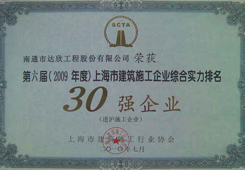 達欣股份首次挺進進滬施工企業前30強(進滬施工的江蘇企業僅有八家),這標志著公司跨入了進滬強企的第一方陣,標志著公司進滬施工進入了新階段!同時公司還再次榮獲了“上海市建筑業誠信企業”稱號。上海市的主流媒體“解放日報”、行業報刊“建筑時報”均予以報導。